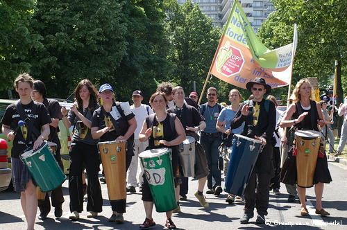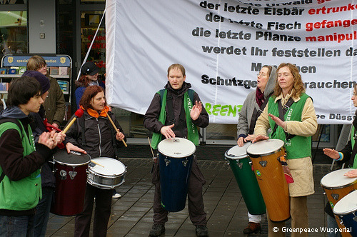 Bisher haben wir u.a. auf mehreren Greenpeace-Demos in der Region West, auf Gewerkschaftskundgebungen und auf
